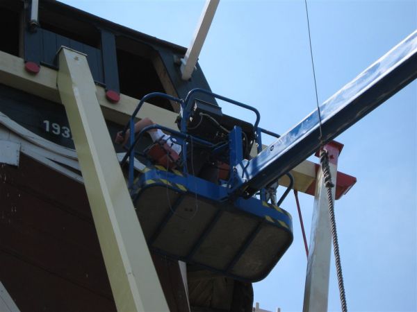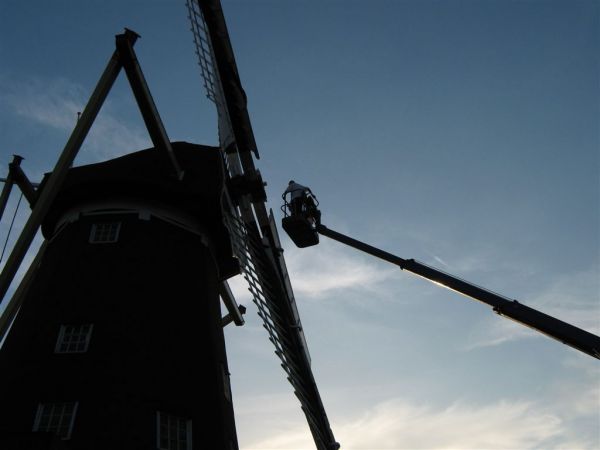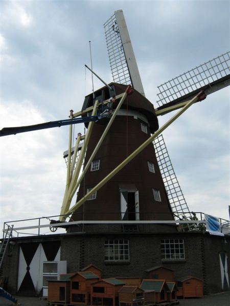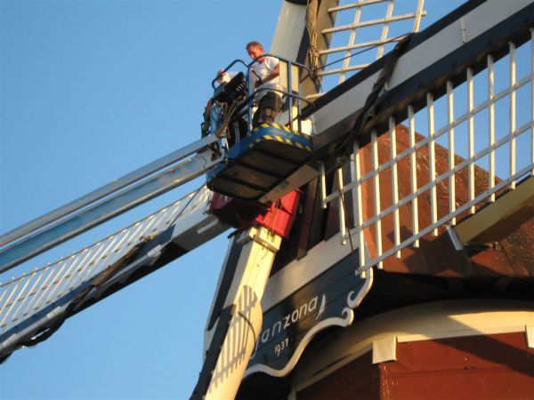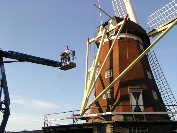 Impressie van schilderwerkzaamheden aan molen Janzona - Budel